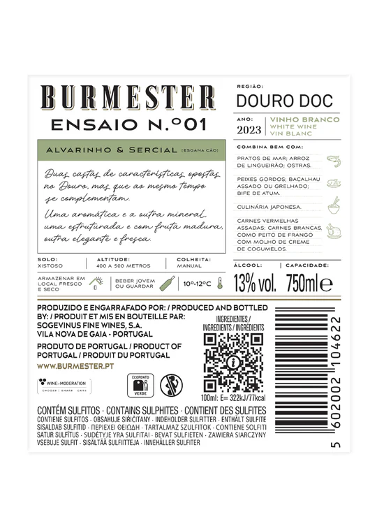 Início  /  VINHOS  /  BRANCO  /  Brancos do Douro  /  Burmester Ensaio N.º 01 - Alvarinho e Sercial